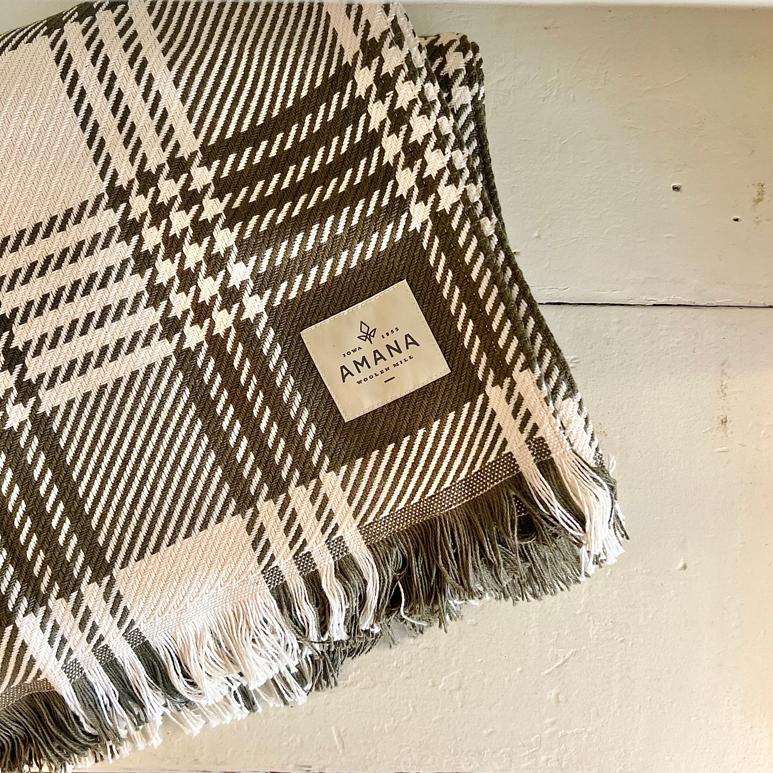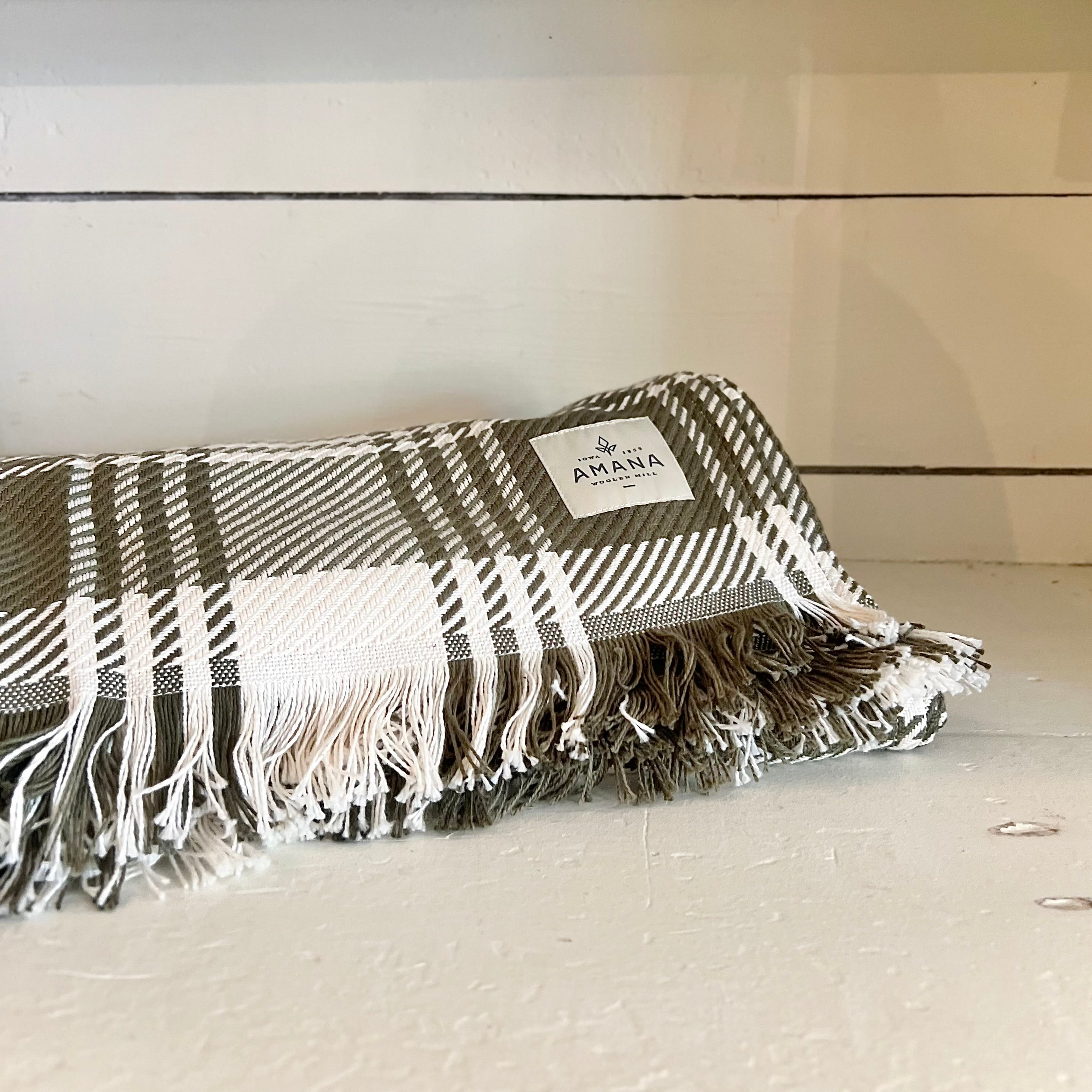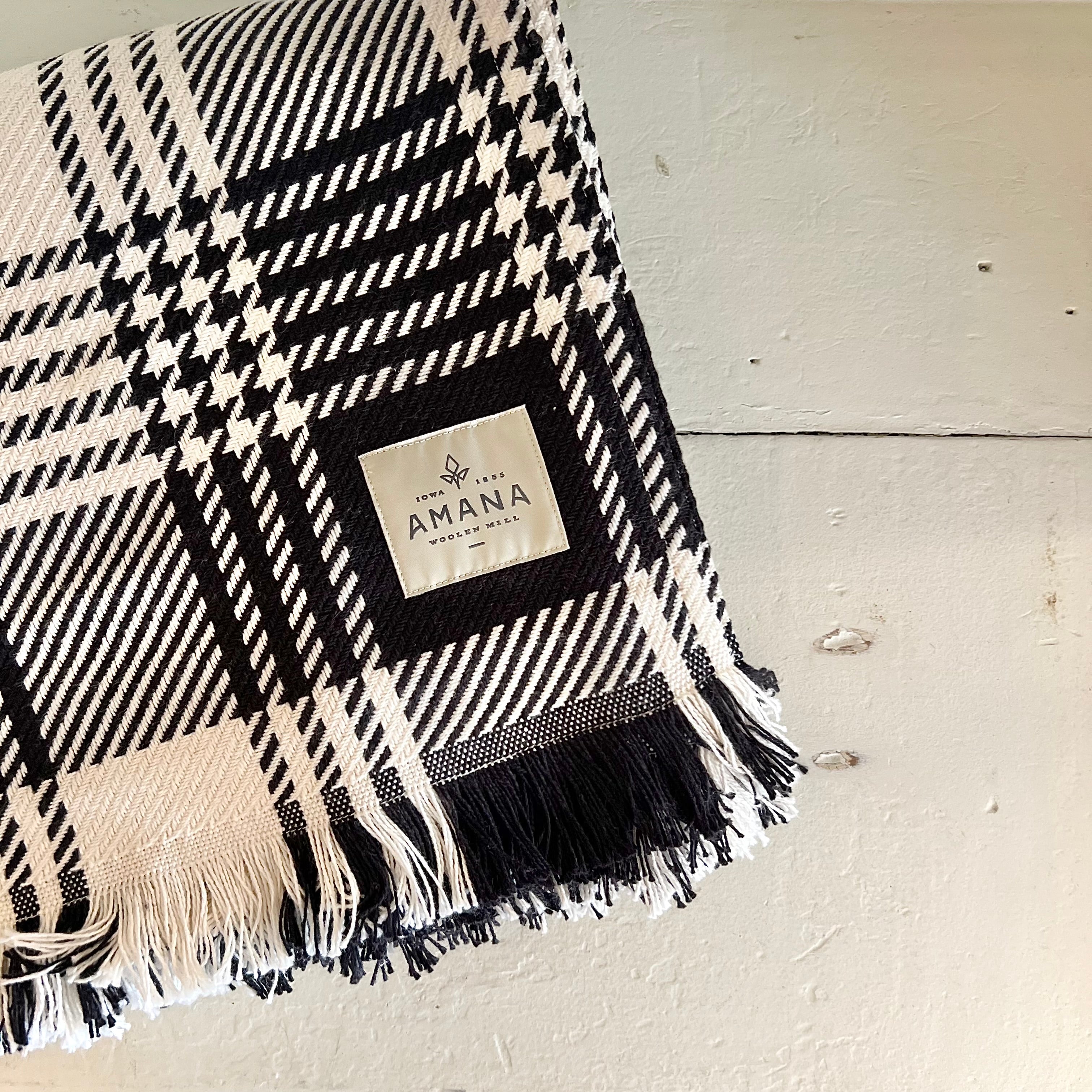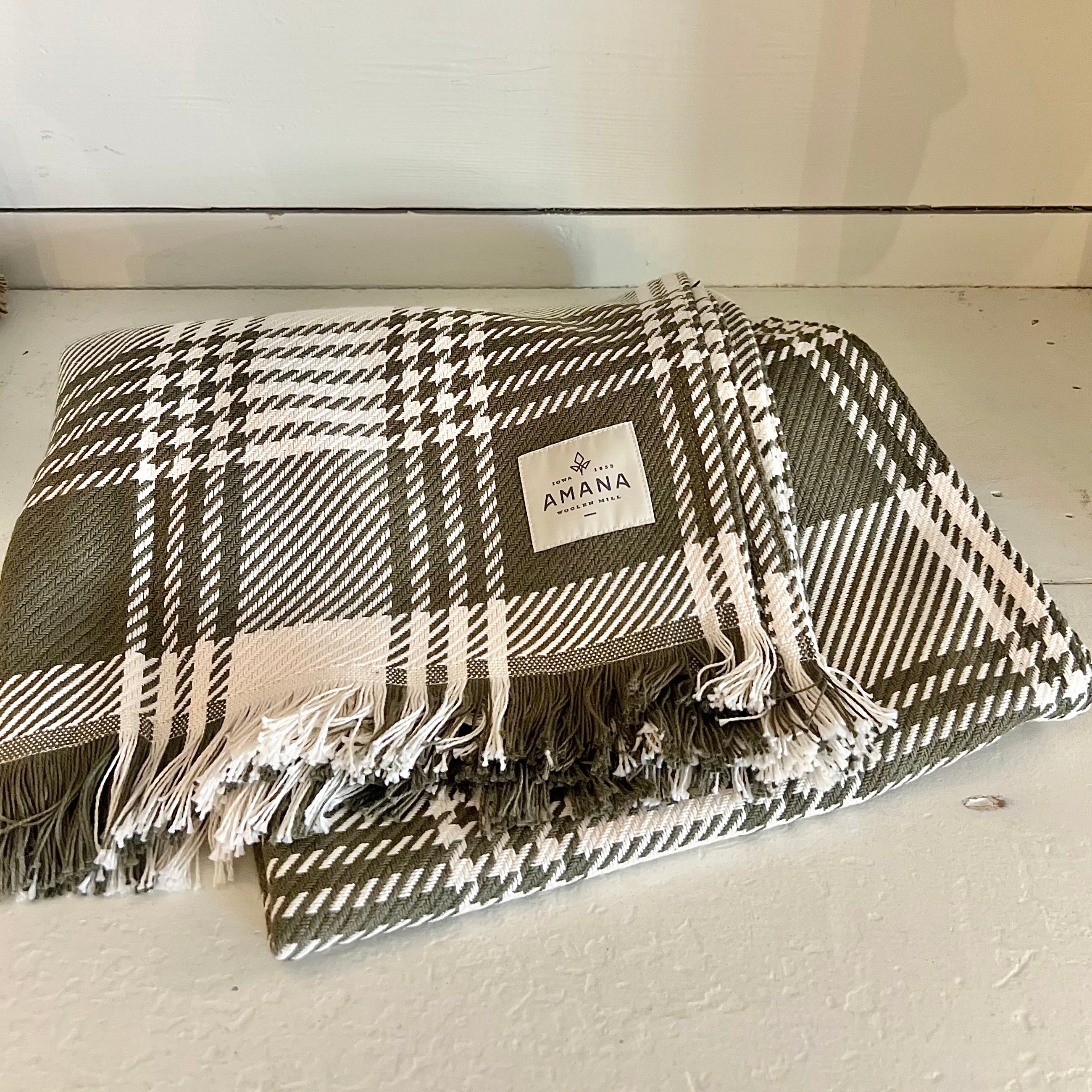 This classy 100% cotton throw will add a graceful elegance to your home decor. The oversized 4" blocks in the plaid pattern give it a modern feel while the chunky twill weave make it as soft as butter, all topped off with a 2" fringe. Made in Amana, IA, USA. 60"x80"