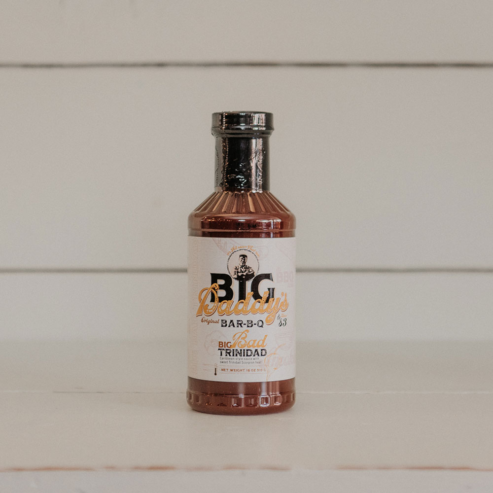 This is the sauce that started it all back in 1983 at Big Daddy’s BBQ when it was still a restaurant in Des Moines. Mild is a heat level 1 out of 5. Sweet & Hot is a heat level 2 out of 5. Big Bad Trinidad is a Caribbean style bbq sauce with Sweet Trinidad Scorpion and a heat level 3 out of 5.