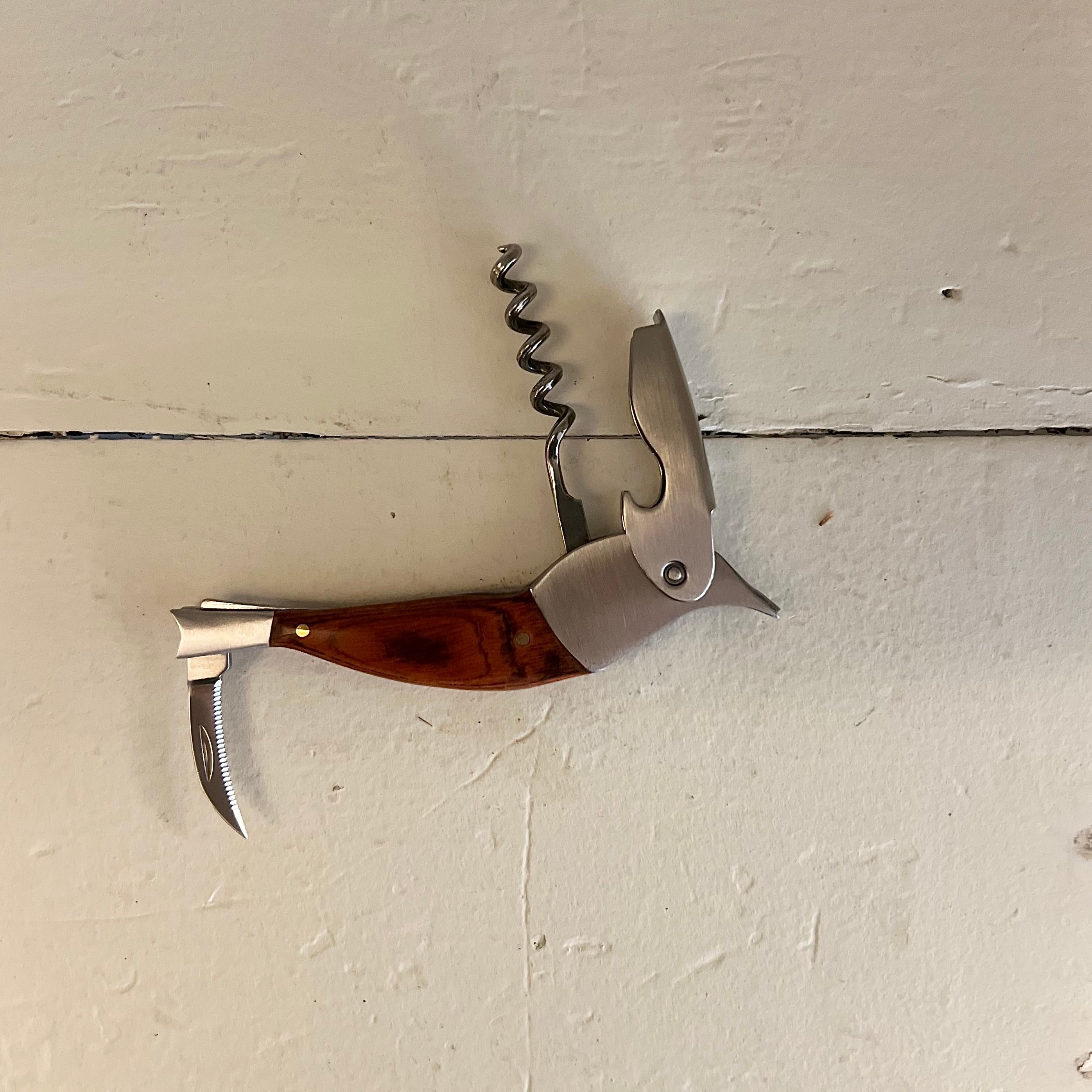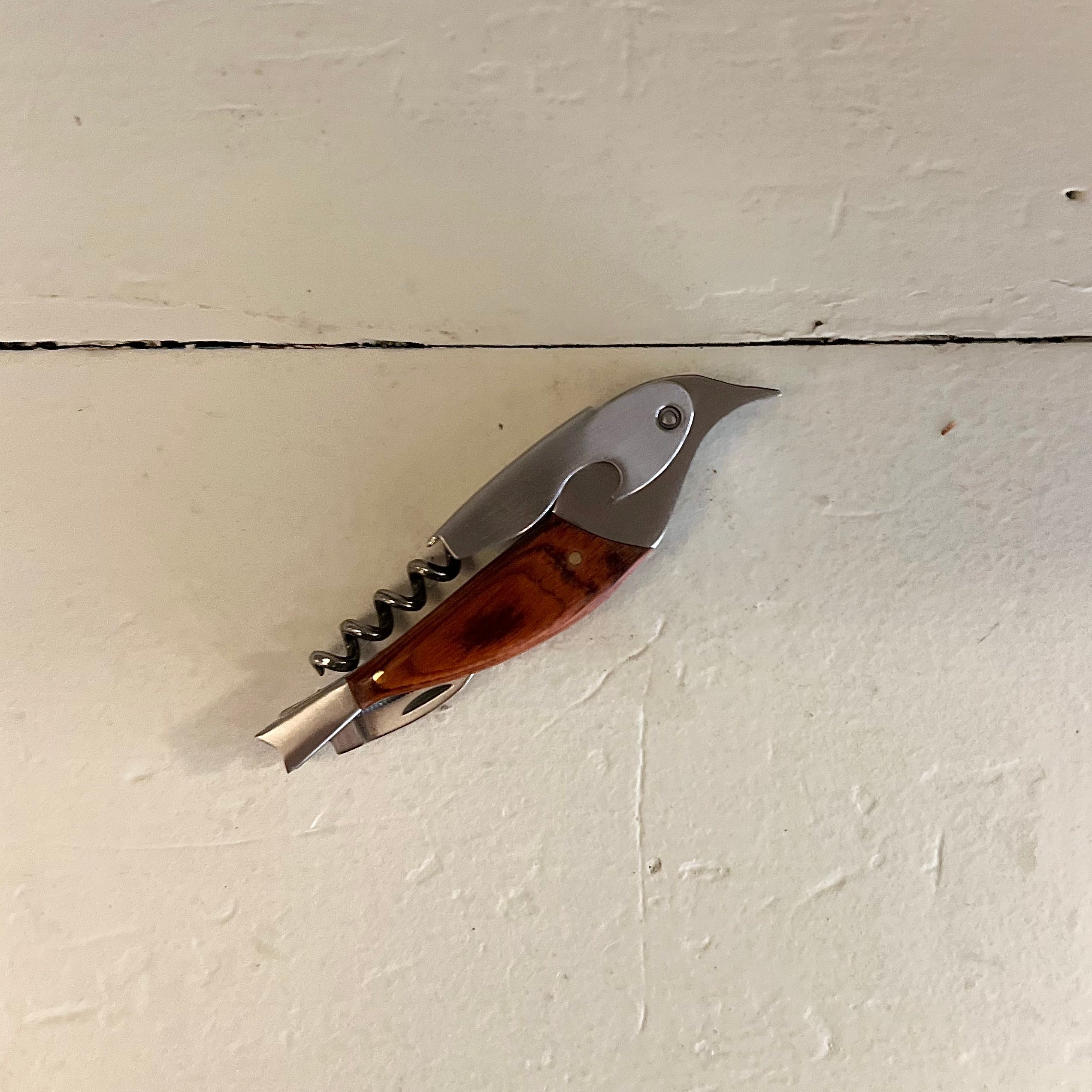 Shaped like a bird this beautifully crafted wooden with stainless steel bottle opener is a fun alternative to traditional openers. 3-in-1 Bottle Opener, this quirky bird is not only fun but is also practical. It includes a wine corkscrew, bottle opener and a foil cutter.