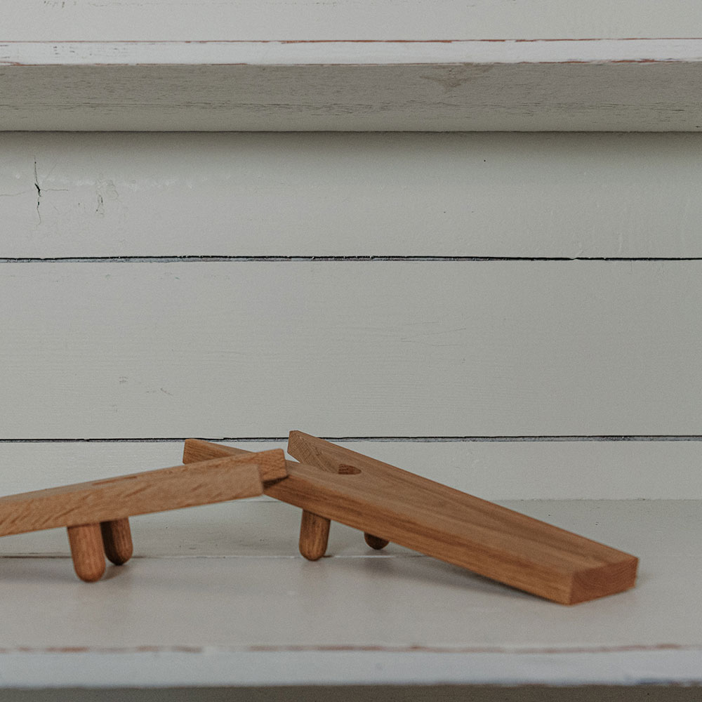 Oak bootjack is a solid tool to have by the back steps. Keep hands clean and take boots or rainboots off with ease. With turned feet, 14" long. Made in England from American white oak.