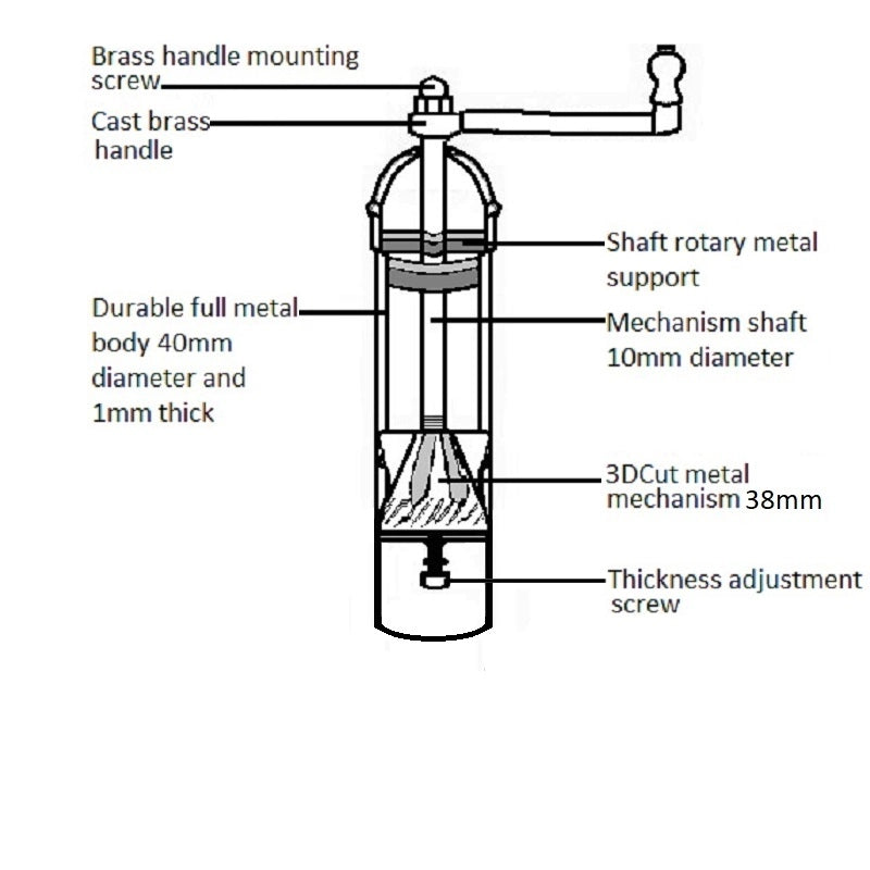 7" 'Brass mill' are handmade of solid brass and are equipped with a cast grinder that is designed so that it grinds the spices optimally. The 3-part grinding mechanism first guides the spice down into the mechanism, after which it is coarsely ground and finally completely finely ground.