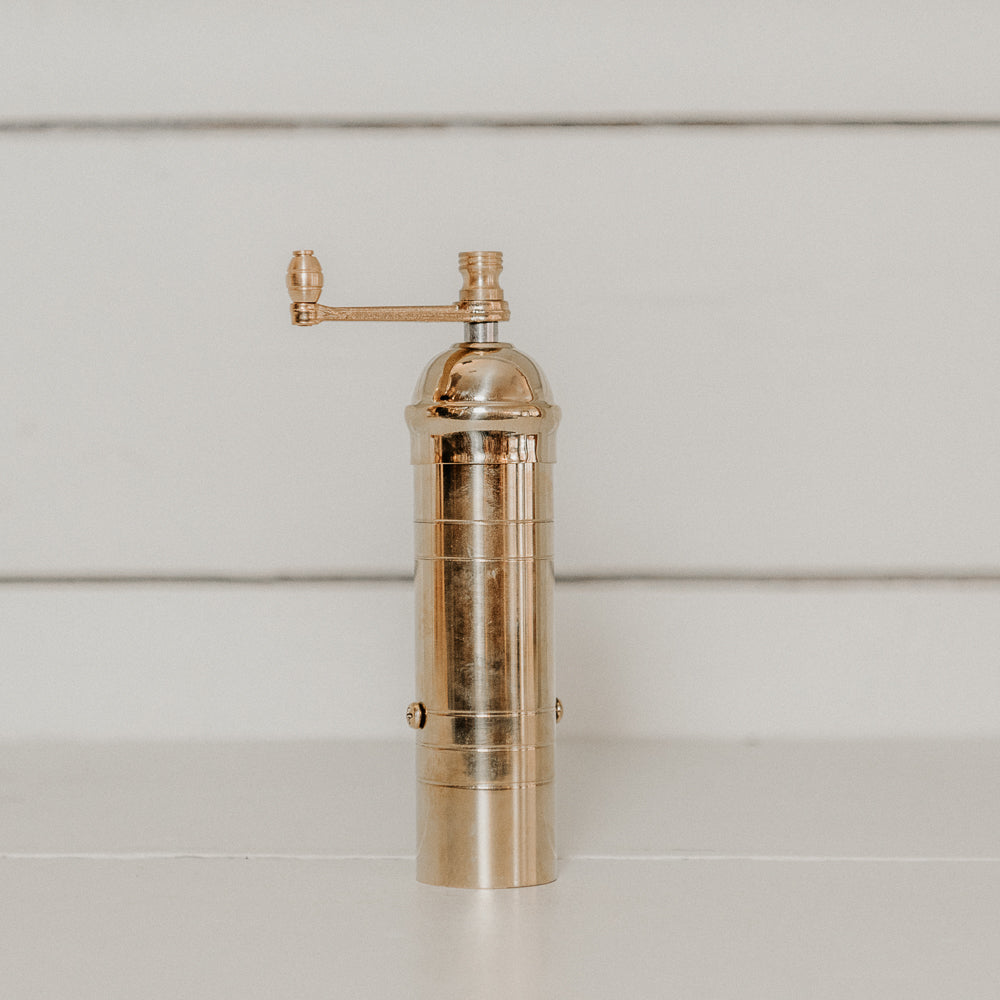 The genuine 1.4 x 7" 'Small Brass Mill' from Greek Alexander Handmade Mills is a beautiful, traditional pepper grinder, crafted with precision.