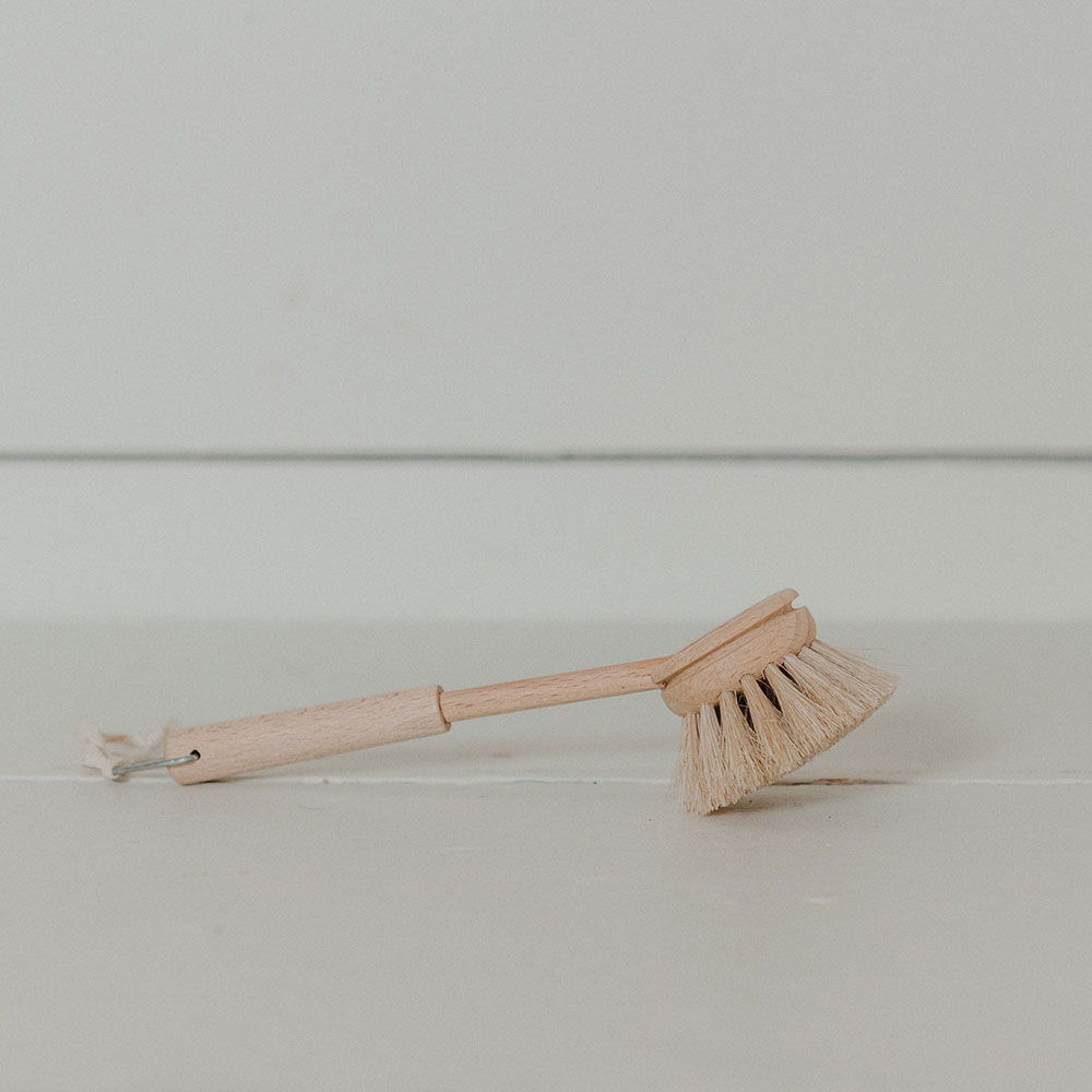 Redecker Children’s Children’s Dish Brush with untreated beechwood handle and horsehair fibers. Ergonomic design for small hands, resilient natural bristles, hanging loop for storage, made in Germany. Measures a miniature-sized 8 inches long. Provides a simple solution to cleaning dishware and glassware; gently and effectively scrubs pots and pans. Naturally soft, dense and durable horsehair bristles allow for delicate yet effective cleaning; positioned to scrub at all angles and suitable for any surface. Untreated beechwood brush handle ergonomically designed for those with the smallest of hands; brush measures 8″ long and ages gracefully over time. Durable design can also be used for just about any cleaning or scrubbing purpose; rounded brush head and easy-grip handle easily reaches into corners and crevices. For maintenance, use a mild soap and warm water solution; towel blot to remove excess moisture and air dry.