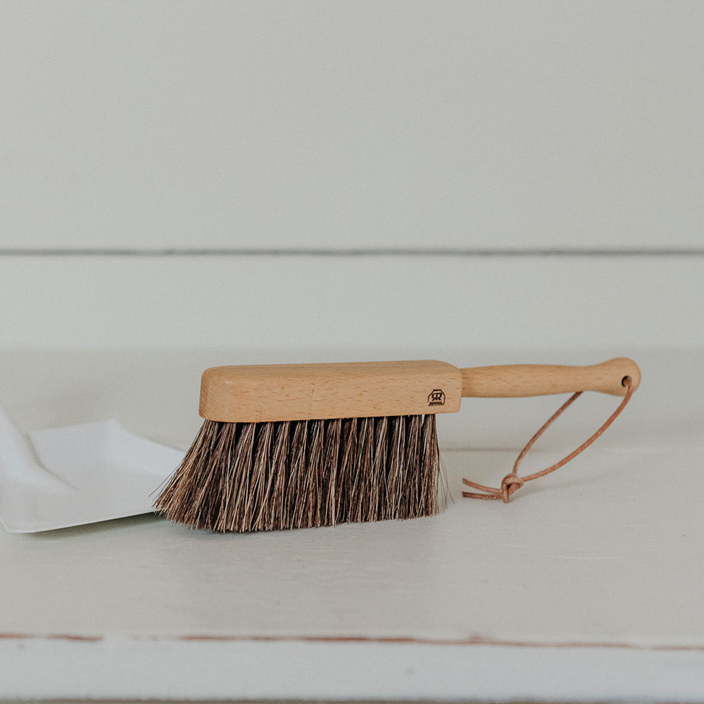 Get the kiddos involved with helping around the house with this beechwood and horsehair cleaning brush. It’s just as durable and useful as a full size hand brush but designed especially for little hands. Clean the brush with dishwashing liquid and warm water. Hang or stand on the bristles to dry to keep the wood from splitting. Oil as needed with mineral oil.