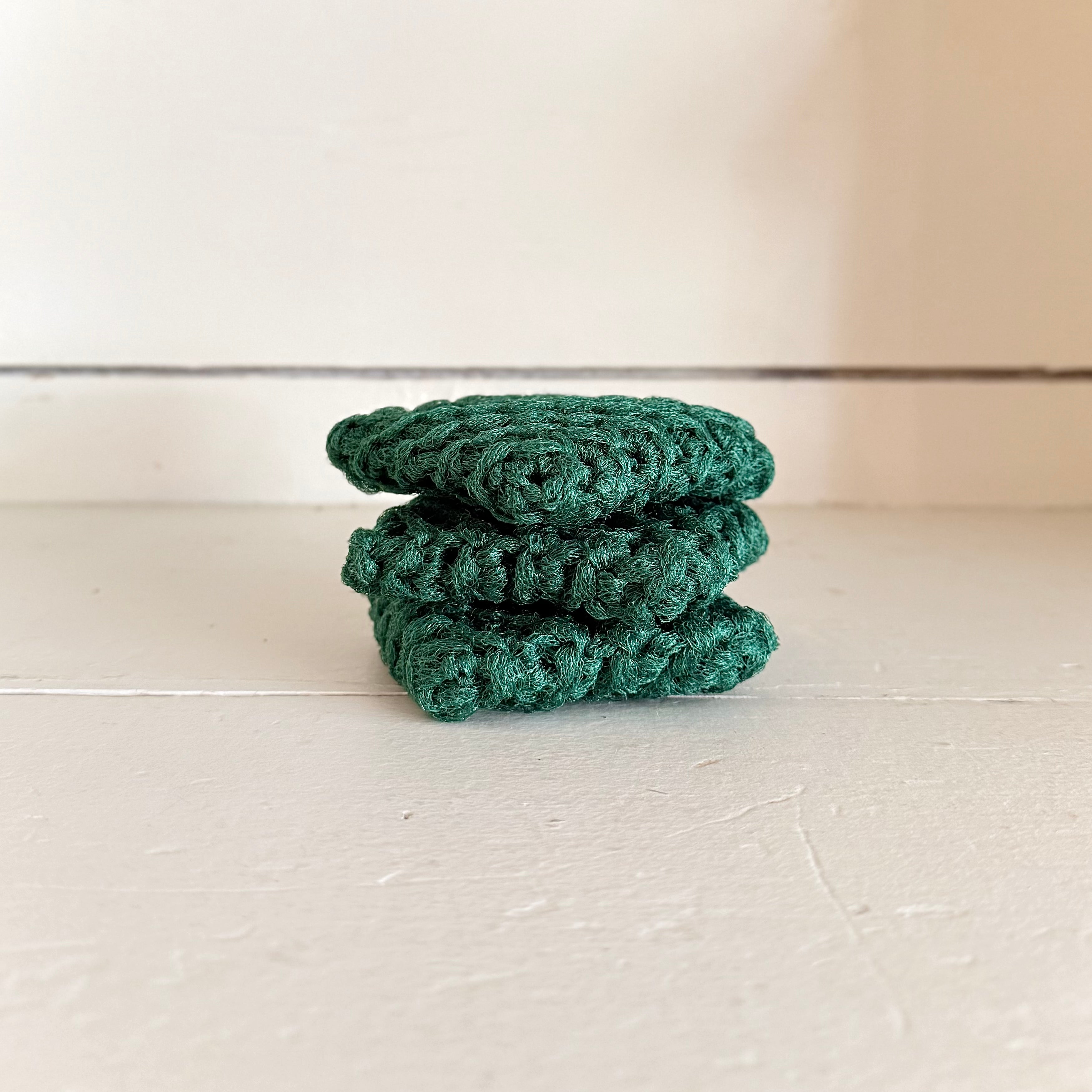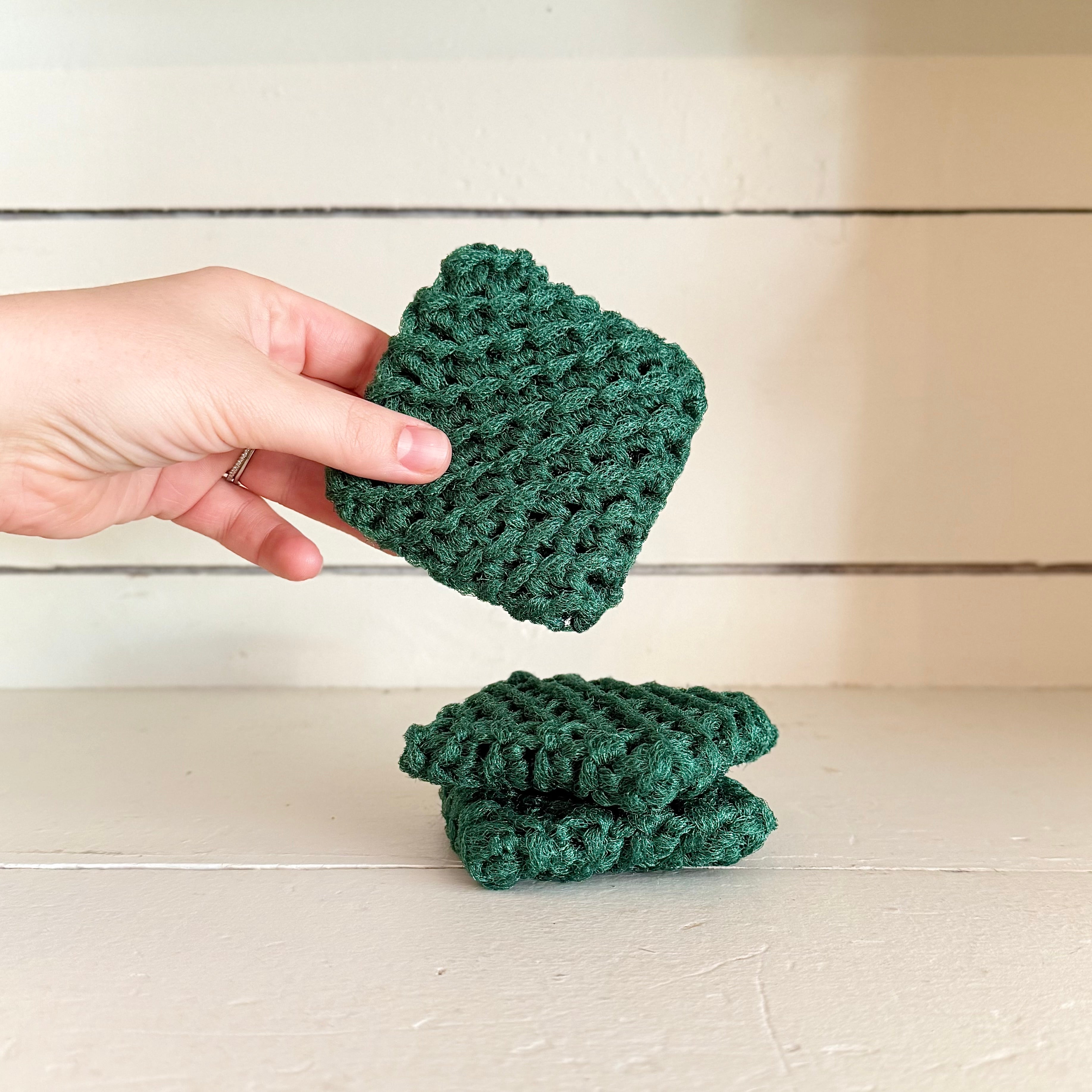 Ditch the stinky sponge for these durable nylon scrubbies. One scrubbie should last about 6 months and even up to 12 if cared for correctly. It dries easily, holds its form and shape, is easy to clean and safe to use on all surfaces.3 1/2”Simply throw in the top rack of the dishwasher or in the washing machine and air dry every few days to keep clean.