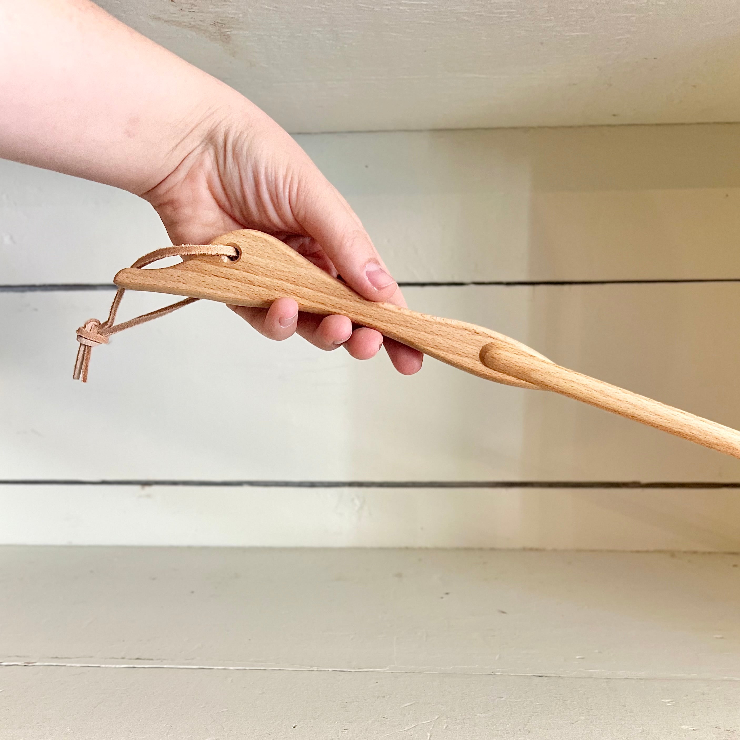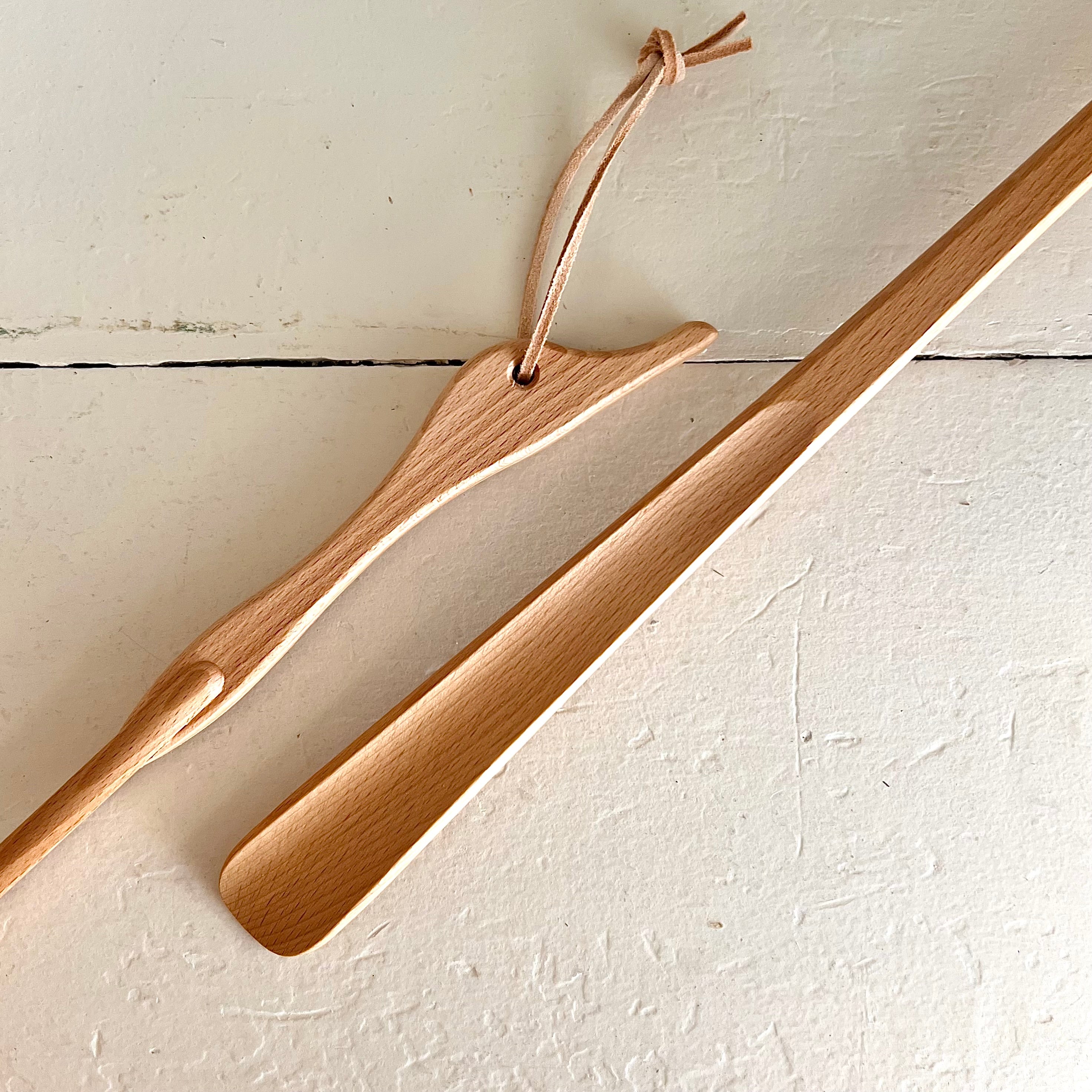 No more bending over when you put on your shoes! Our cute duck-shaped shoehorns with extra long handle is easy on your back and protects the heels of your shoes at the same time. 25.5” and made from oiled beechwood.