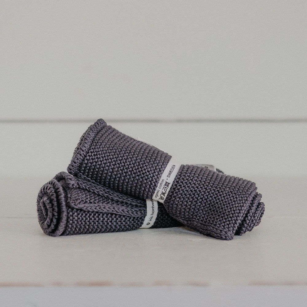 Towels in knitted organic cotton. The organic cotton has a lovely softness and pliability while knitting gives a nice exfoliating feeling. Lovely to use in the shower or bath.
