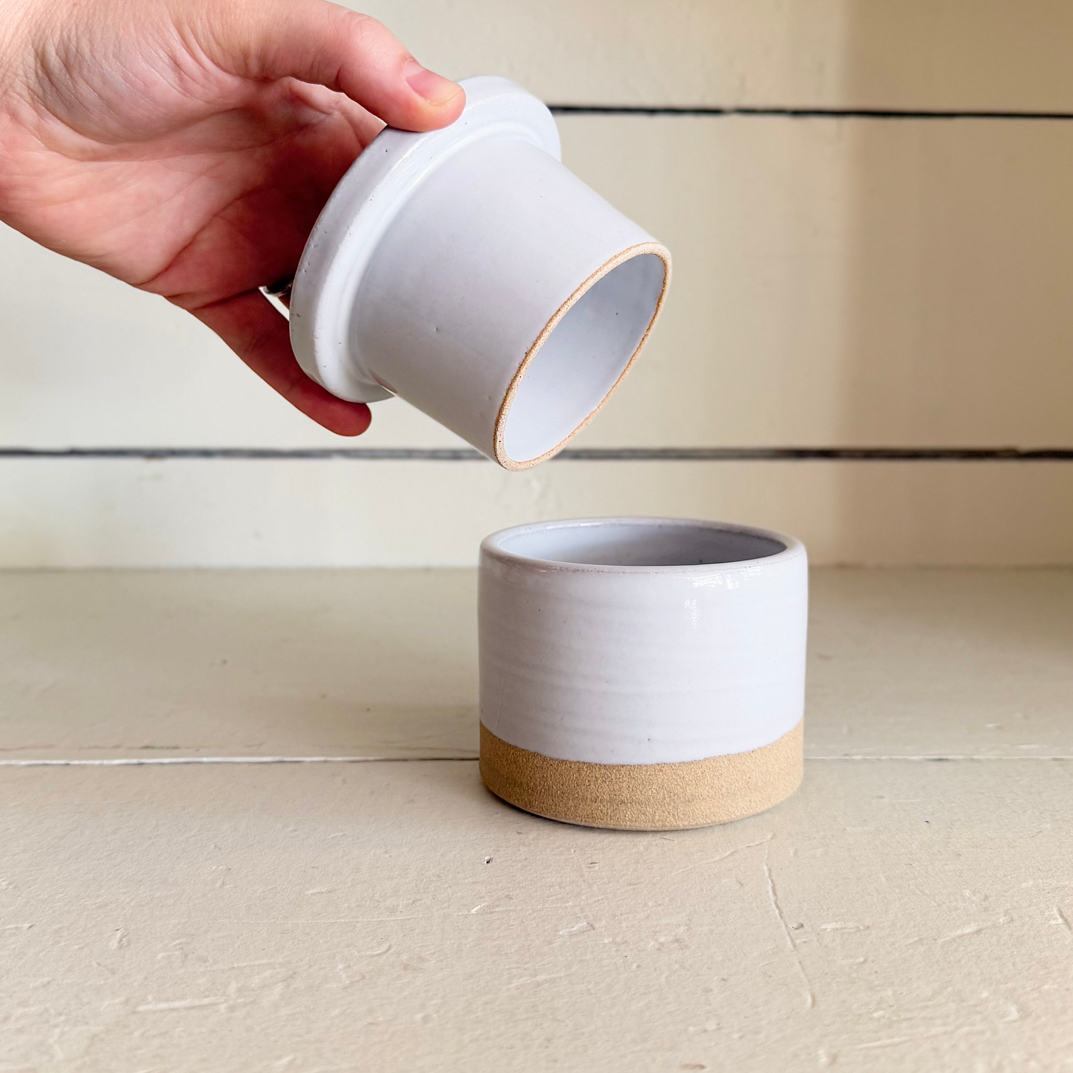 This Silo Butter Keeper, inspired by the French beurrier, is the perfect way to keep butter fresh and soft, ready for spreading on your morning toast or melting over warm biscuits. Designed with the same classic form and organic curves as the rest of our Silo collection, this piece brings both function and beauty to your kitchen. Fill the lid with butter, add water to the base, and enjoy perfectly spreadable butter every day. Handcrafted for your table, it’s a classic that fits seamlessly into your farmhouse routine.