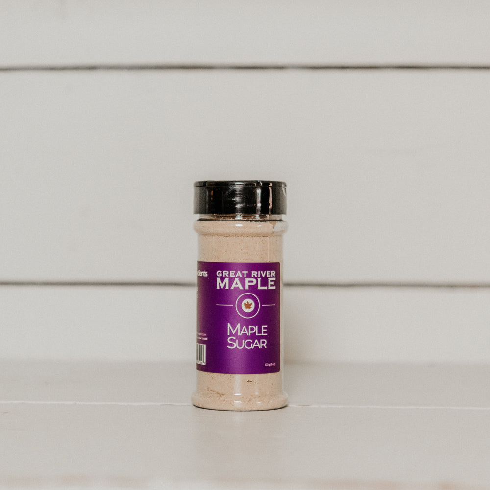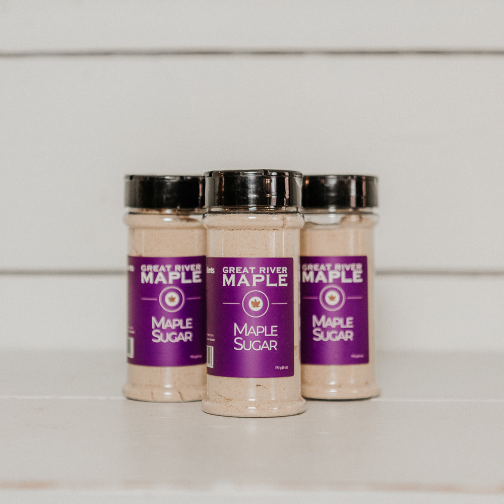 100% Maple Syrup- made by evaporating water out of maple syrup until a fine powder remains. By replacing refined white sugar with maple sugar you can reduce the sugar in a recipe by half. Maple sugar is also a great topping for lattes, peanut butter toast or to rim cocktail glasses.