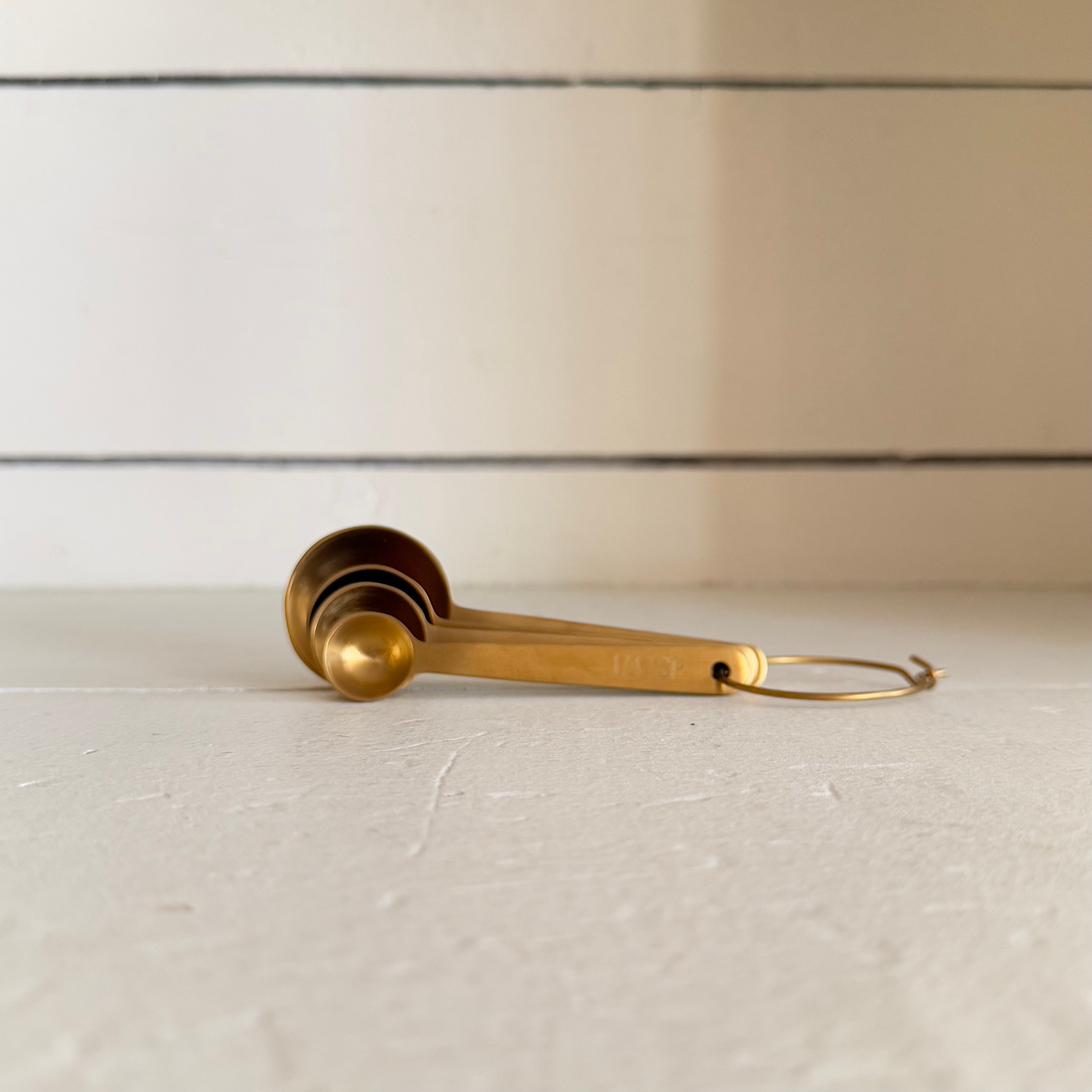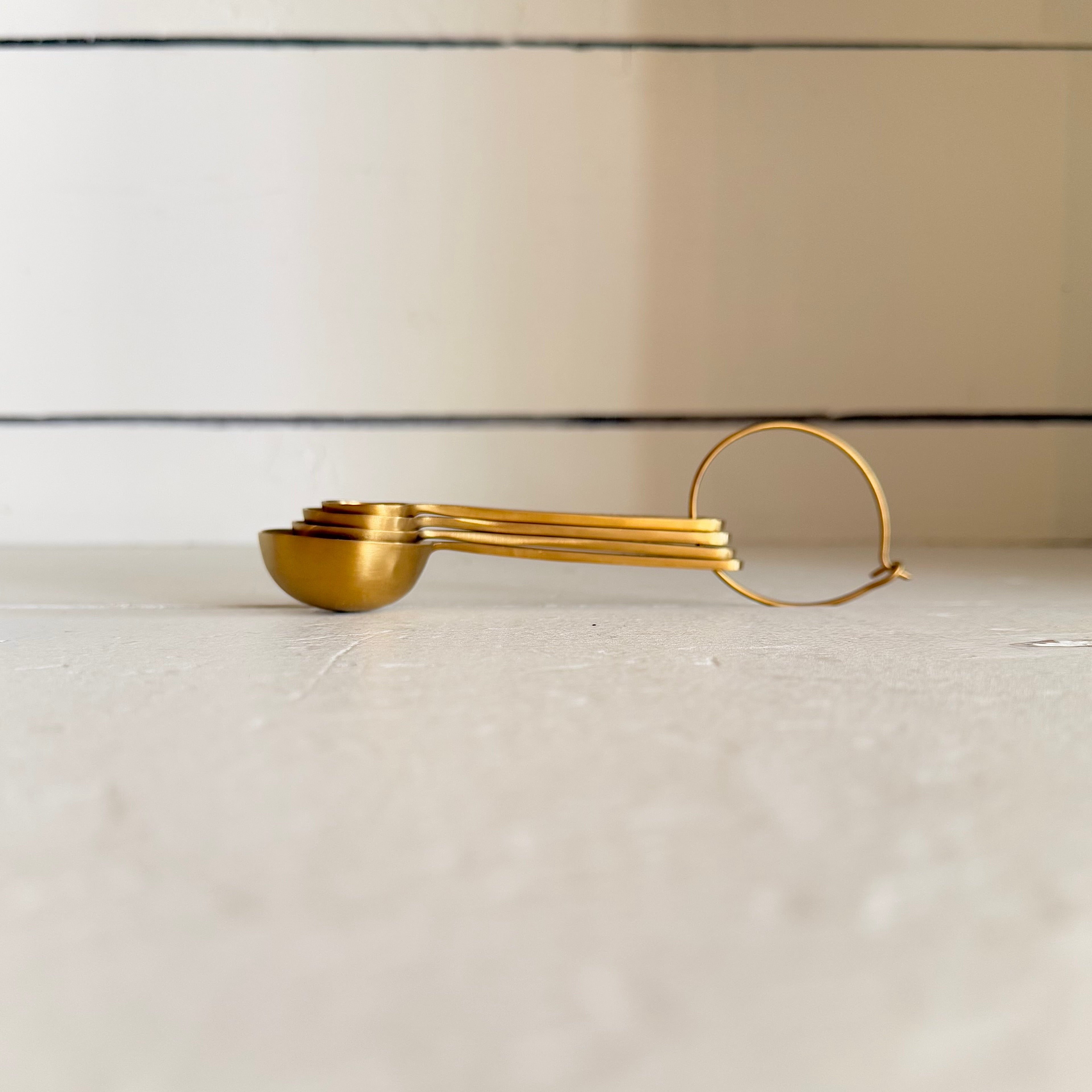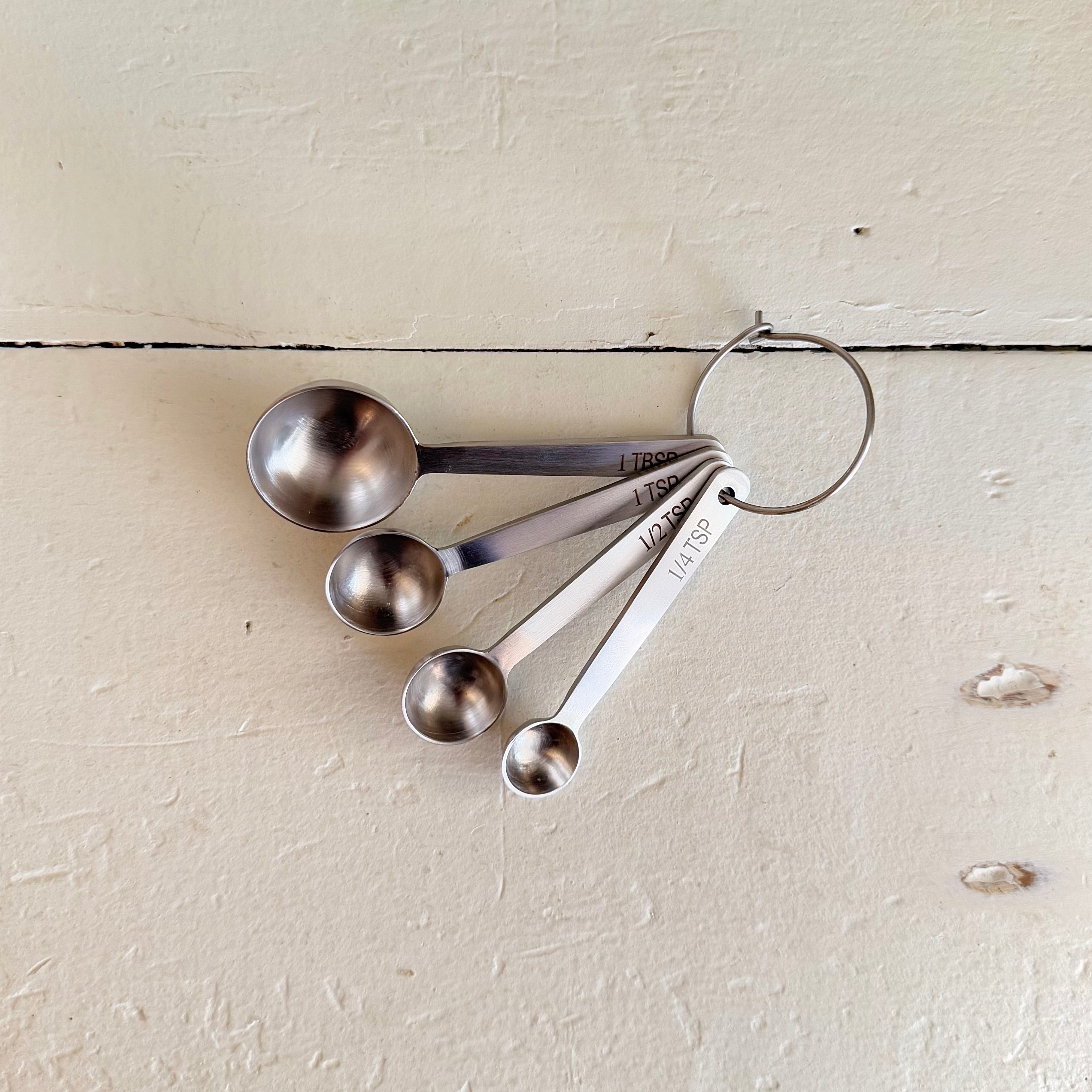 These sturdy measuring spoons from Farmhouse Pottery are nicely weighted stainless steel with a classic design. Available in brushed gold or brushed silver.