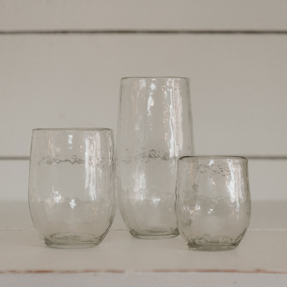 These thick, dimpled glasses are a must for everyday use. They will be your first choice as dinnertime water glasses or for sipping smoothies in style at breakfast. The options are endless!
