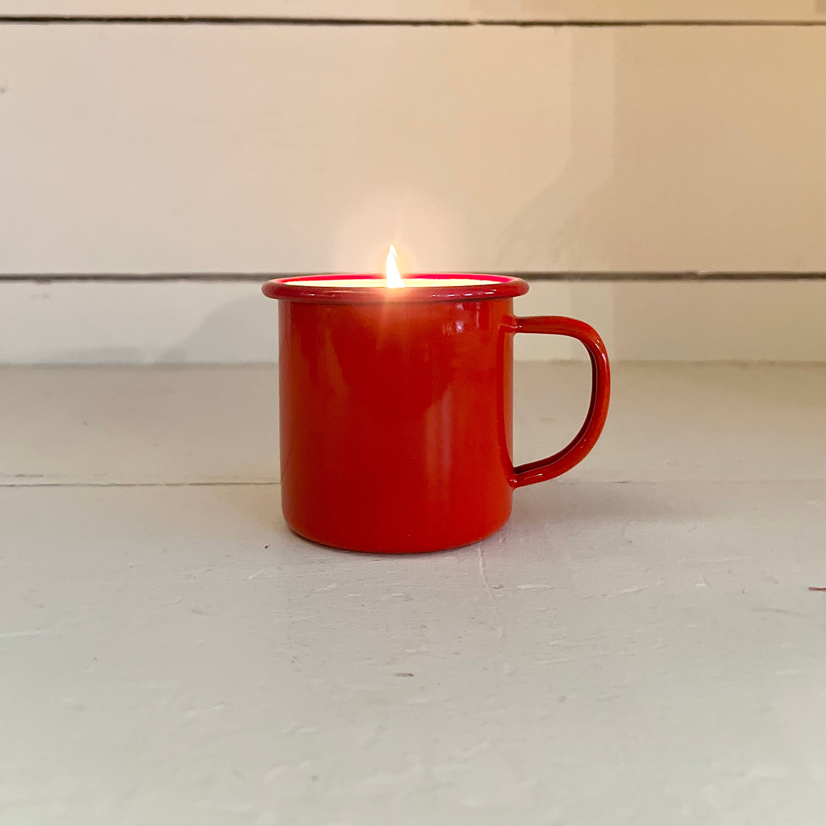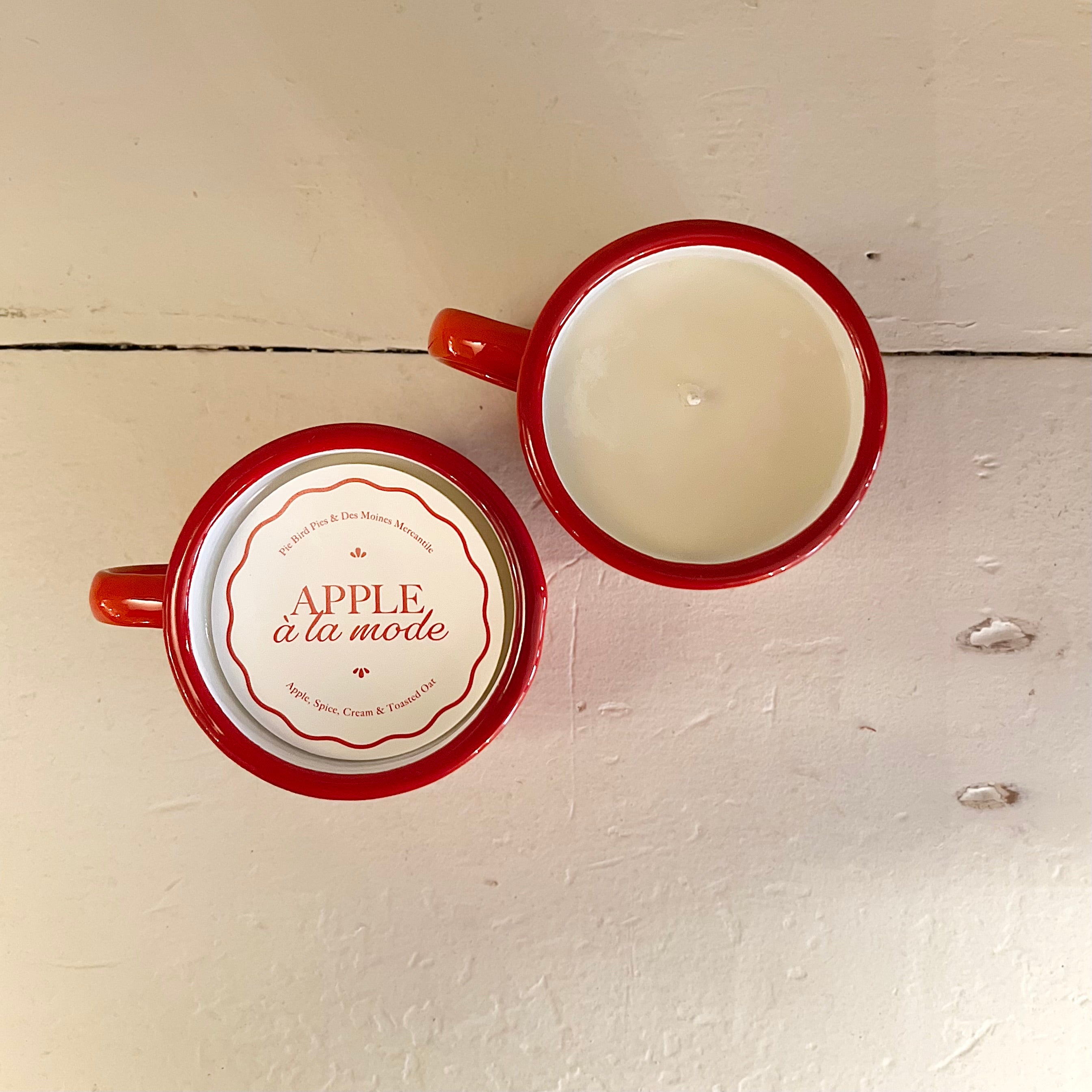 This candle we created is made from 100% soy wax and has fragrance notes of apple, spice, cream, and toasted oats. It is 11oz and comes in an heirloom quality enamelware mug from Falcon Enamelware; perfect for cozy drinks once you’re through with your candle!