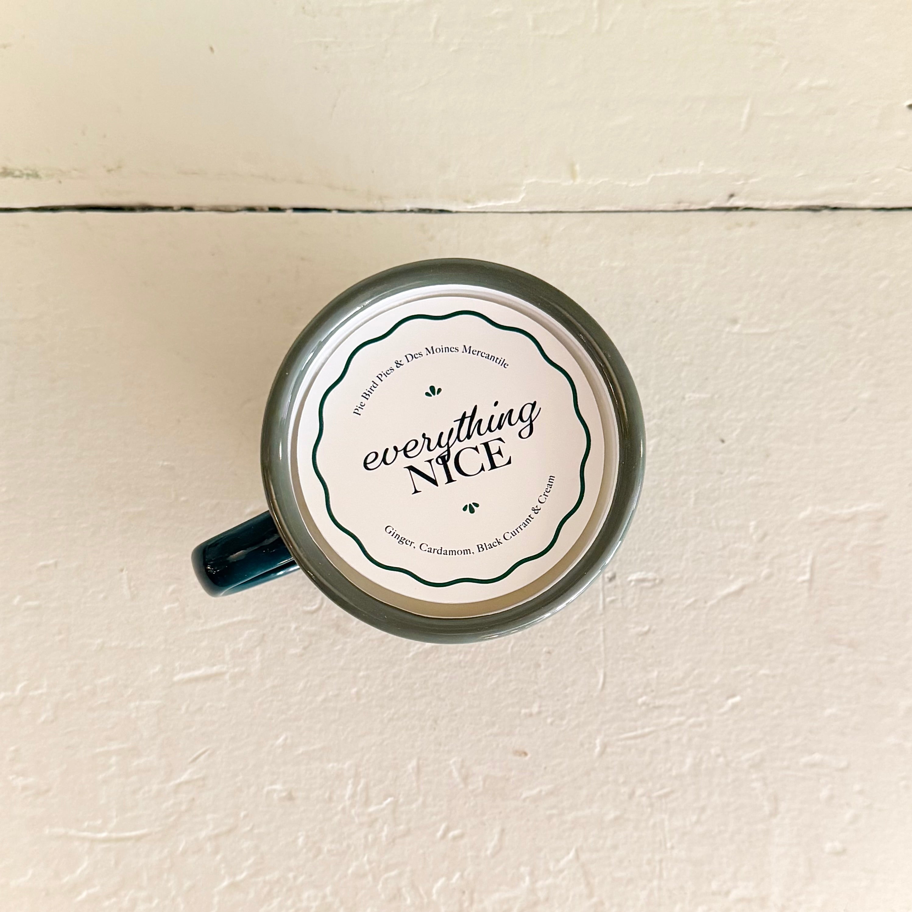 This candle we created is made from 100% soy wax and has fragrance notes of ginger, cardamom, black currant & cream. It is 11oz and comes in an heirloom quality enamelware mug from Falcon Enamelware; perfect for cozy drinks once you’re through with your candle!