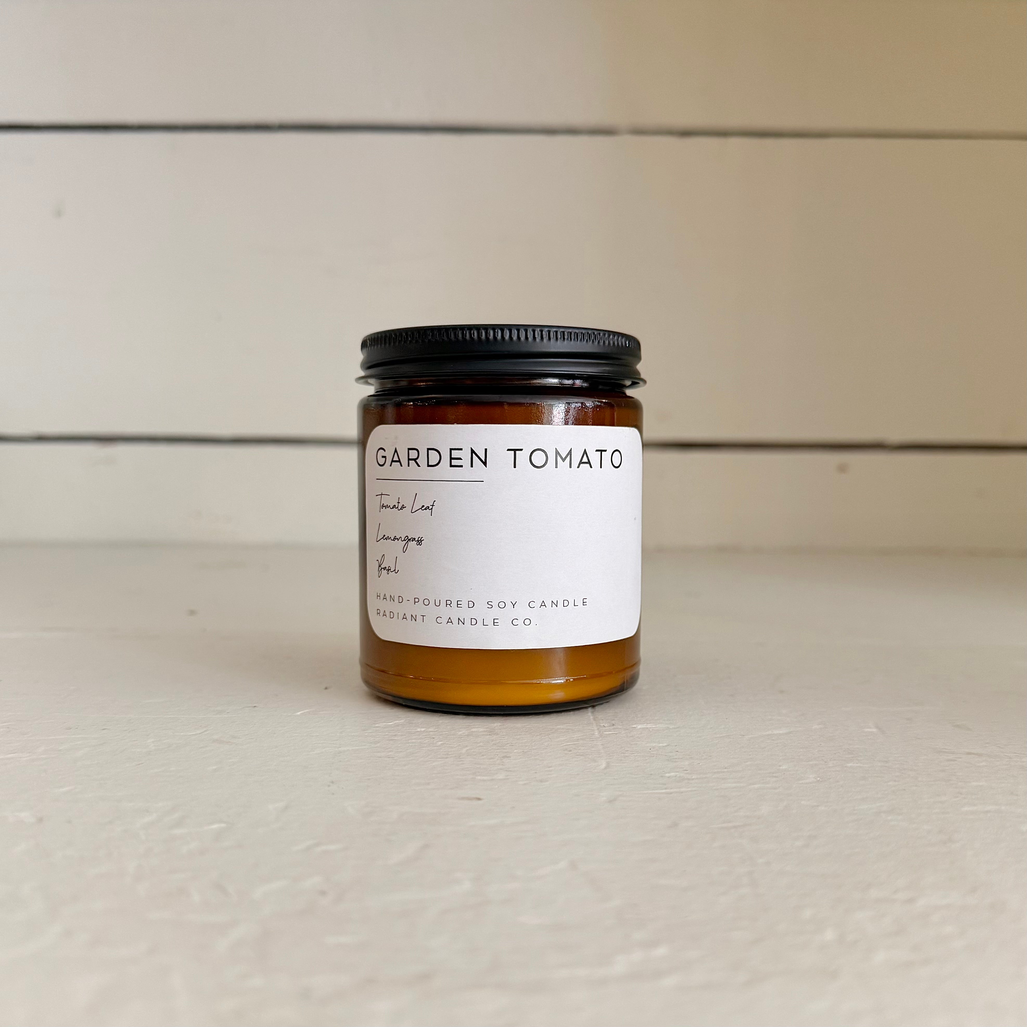Garden Tomato 9oz. candle. Smells like: Tomato Leaf, Lemongrass, Basil.