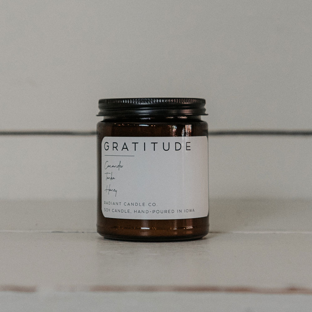 Gratitude 9oz. candle. Smells like: coriander, tonka, and honey.