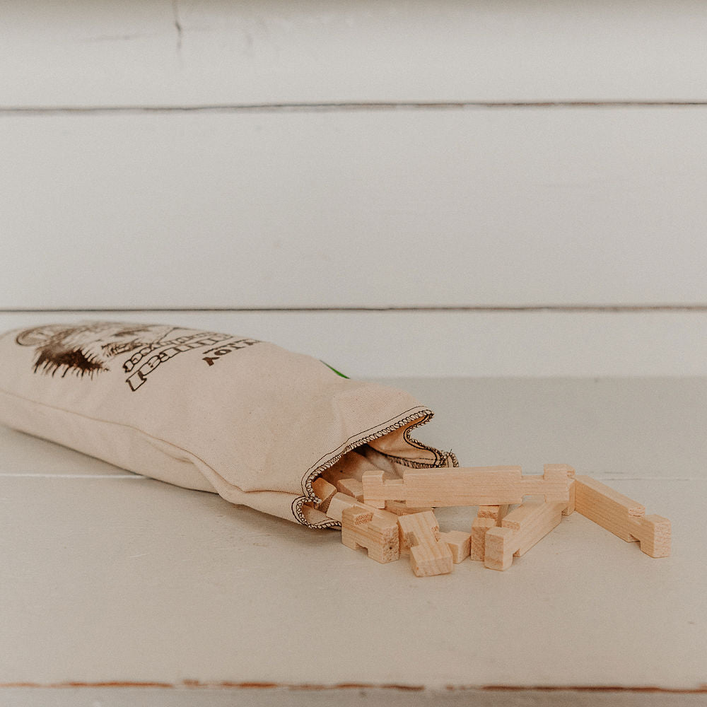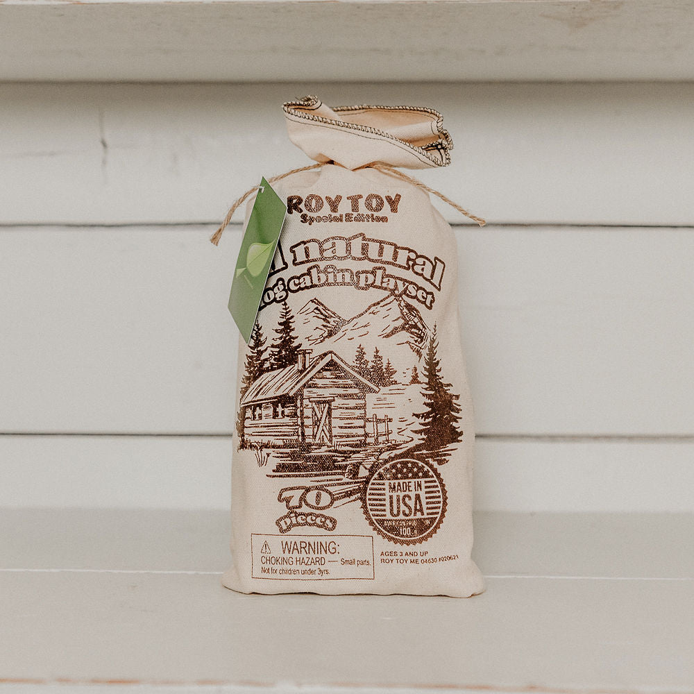 Crafted with all natural wood and made in the USA, the Roy Toy All Natural Log Cabin set includes 70 pieces for endless building possibilities. Experience the benefits of playing with sustainable materials while developing construction skills. Perfect for curious minds and budding builders.