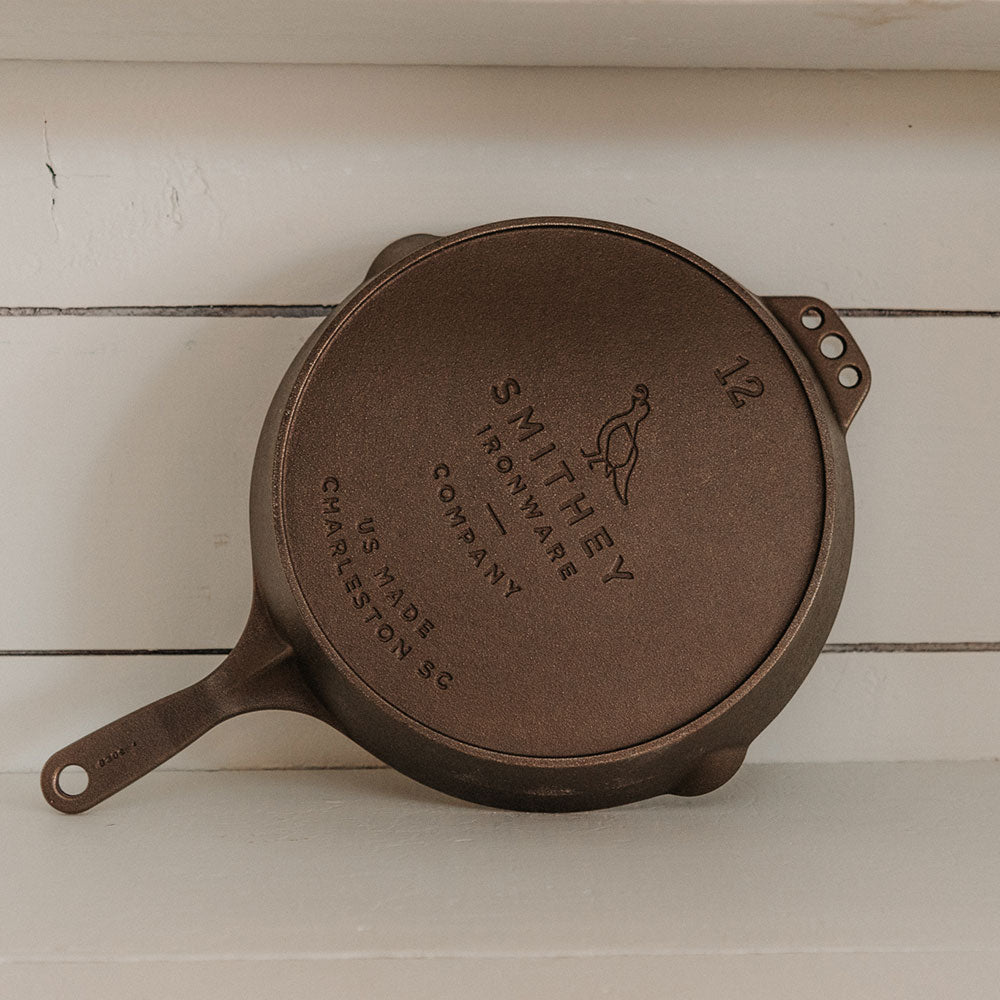 Our best-selling cast iron skillet, the No. 12, will elevate your cast iron cooking. Designed with slightly more surface area and depth than the No. 10, the No. 12 is the perfect size for families of four or those who cook to have leftovers. With our signature polished interior finish, the No. 12, when seasoned, is naturally non-stick and free of chemical coatings. From cooktop to campfire, use it well.